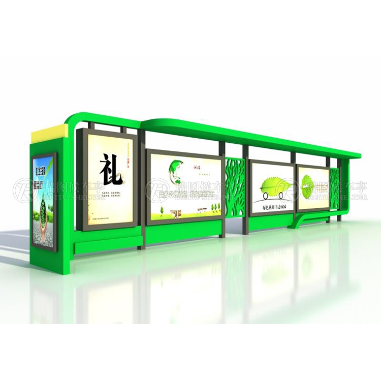 一般采用不銹鋼為框架,鋼化玻璃或者耐力板為面板,鋁合金為頂棚,面板可以打開更換宣傳畫面。